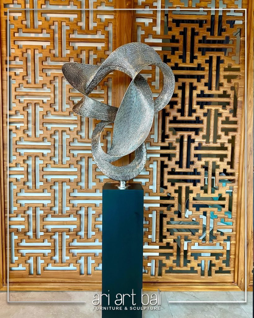 Ari Art Bali proudly introduces The Melilit, a sophisticated stainless steel sculpture that embodies the essence of elegance and fluidity. The name Melilit, meaning “twisted” or “entwined” in Indonesian, reflects the intricate, flowing design of this artwork, with its seamless curves symbolizing unity and movement.