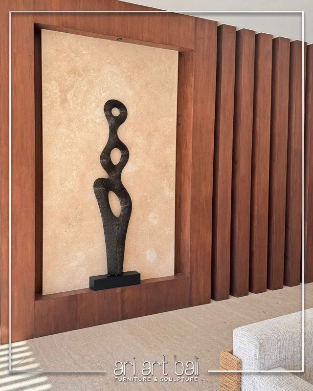 Ari Art Bali presents an elegant stainless steel sculpture, specially crafted for Villa Natalie in Umalas. This bespoke piece features a sophisticated dark bronze finish, adding a touch of timeless elegance to the villa’s luxurious surroundings.